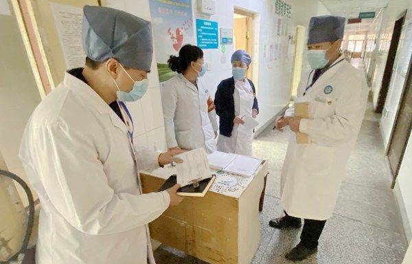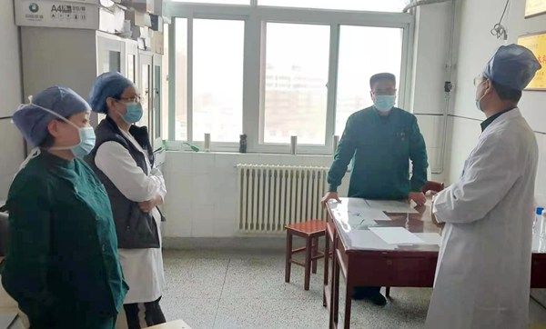 督查开始前参与人员在六楼会议室召开了工作安排会议,会上,党总支副书记、工会主席田恩仓组织学习了《关于石家庄市藁城人民医院、新乐市中医医院新冠肺炎疫情院感防控不力情况的通报》,院长助理、办公室主任王亮组织学习了督查督办组工作职责、本次督查人员分组和督查内容。最后,院长李荣华对本次督查提出了三点要求,一是督查组各成员要提高站位、高度重视;二要对照标准要求认真开展专项督查;三要及时汇总督查结果,提出整改和处理意见。宝鸡市人民医院蹲点的三名专家参与了本次督查工作。